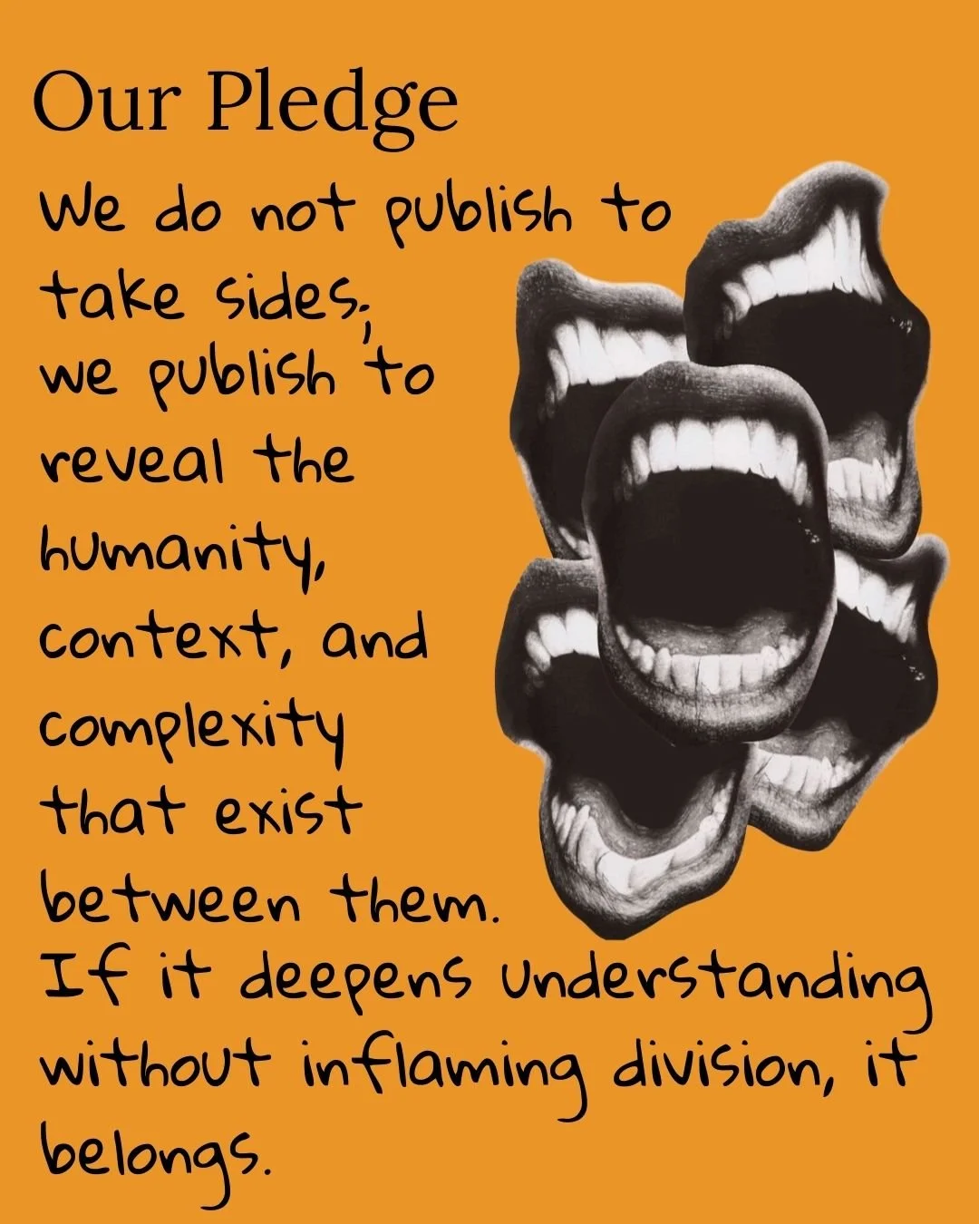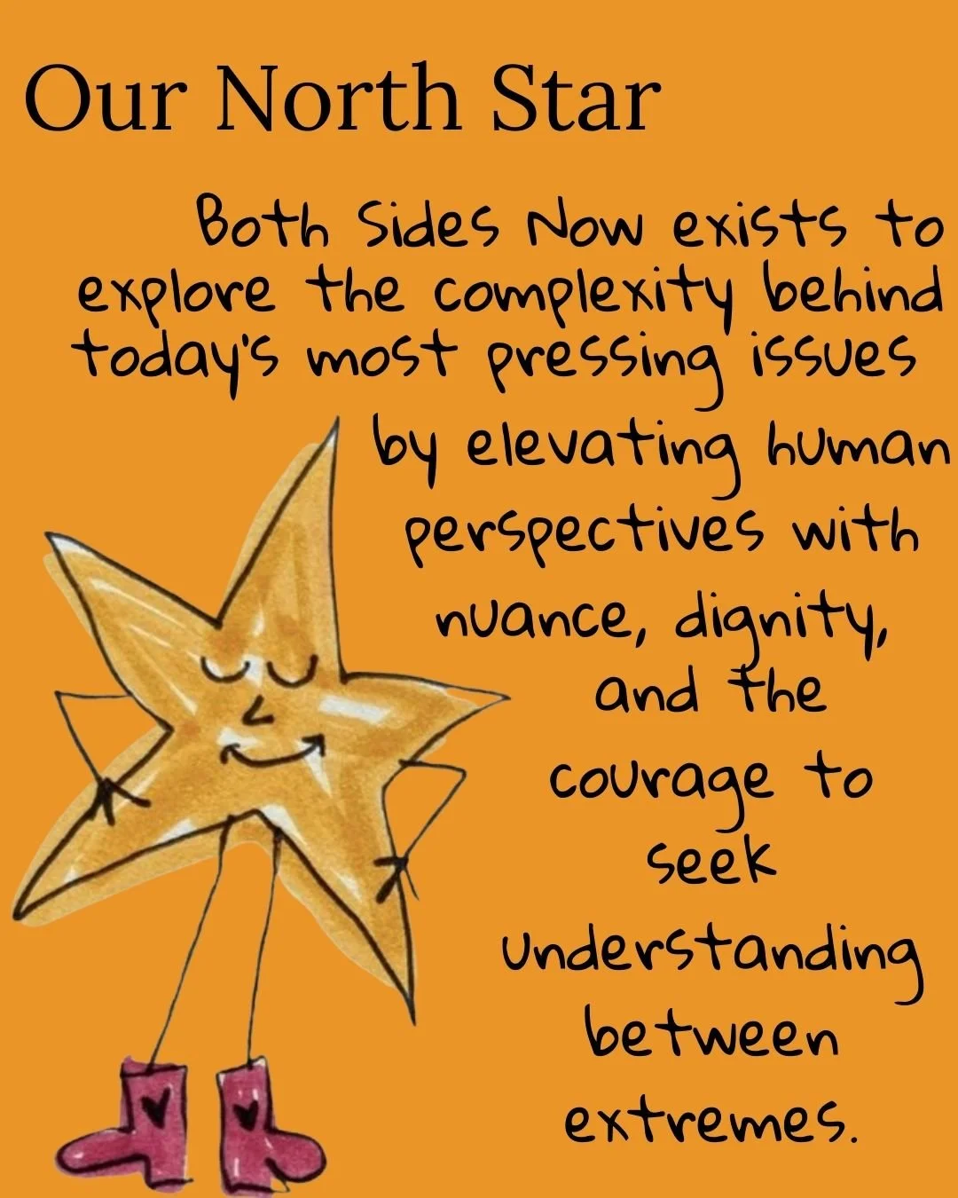 More than a publication, Both Sides Now is a movement. It is an ongoing effort to push back against oversimplification and to foster a culture that values thoughtfulness over reaction. We ask readers and contributors alike to sit in tension, to question their assumptions, and to engage with ideas that may challenge them.